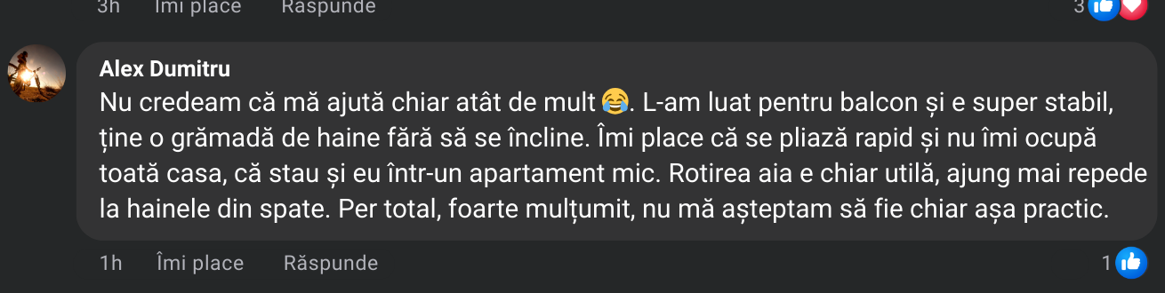 Se pliază în câteva secunde, ocupă foarte puțin spațiu și se potrivește ideal în apartamente sau încăperi mici.